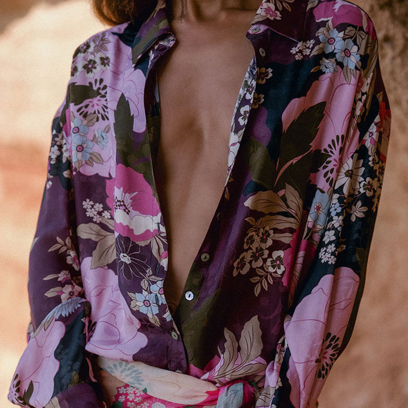 The shell button-down front, classic collar, and buttoned cuffs add a touch of refinement, while the drop shoulder and fluid silhouette make it versatile enough for both casual and elevated looks. Pair it with your favorite denim for laid-back elegance or layer over a slip dress for a chic evening ensemble.